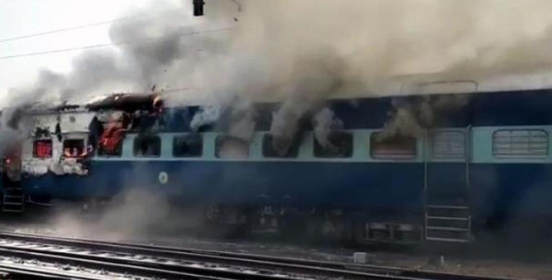 被抗议者烧毁的火车