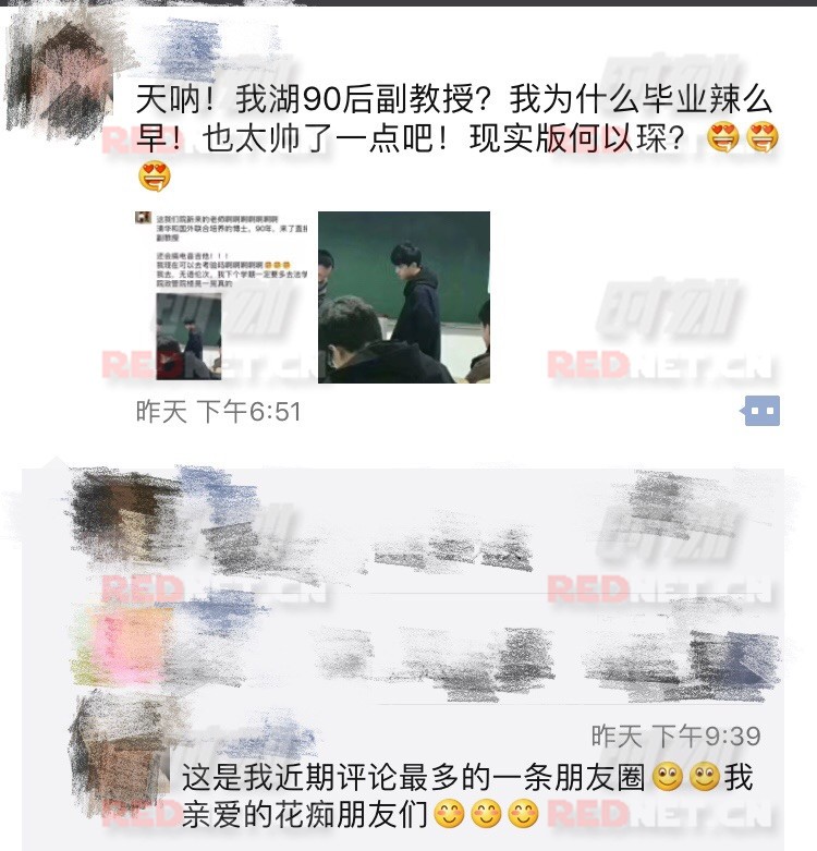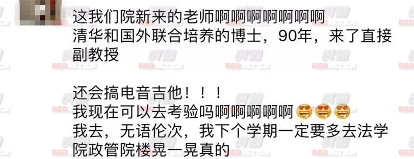 湖南大学的同学纷纷在照片下面留言,这是学院新来的老师,90年,下学期一定多去法学院晃一晃: