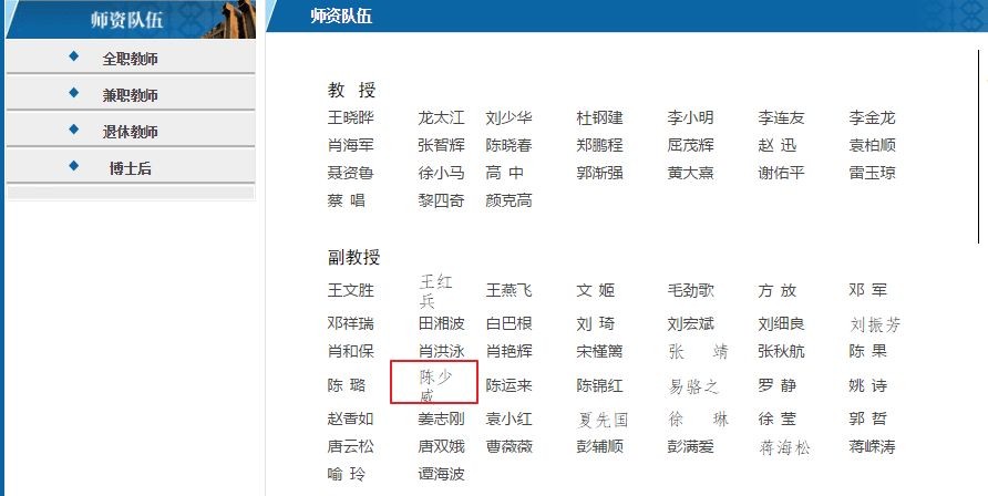 目前,湖南大学法学院官网“师资队伍”栏目最新名单显示,陈少威为副教授。