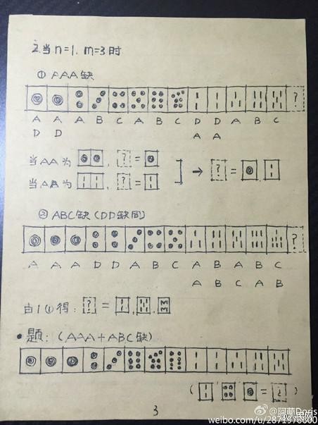 2、“三”“七”摸完叫对称(以下“三”“七”已用完,无)
