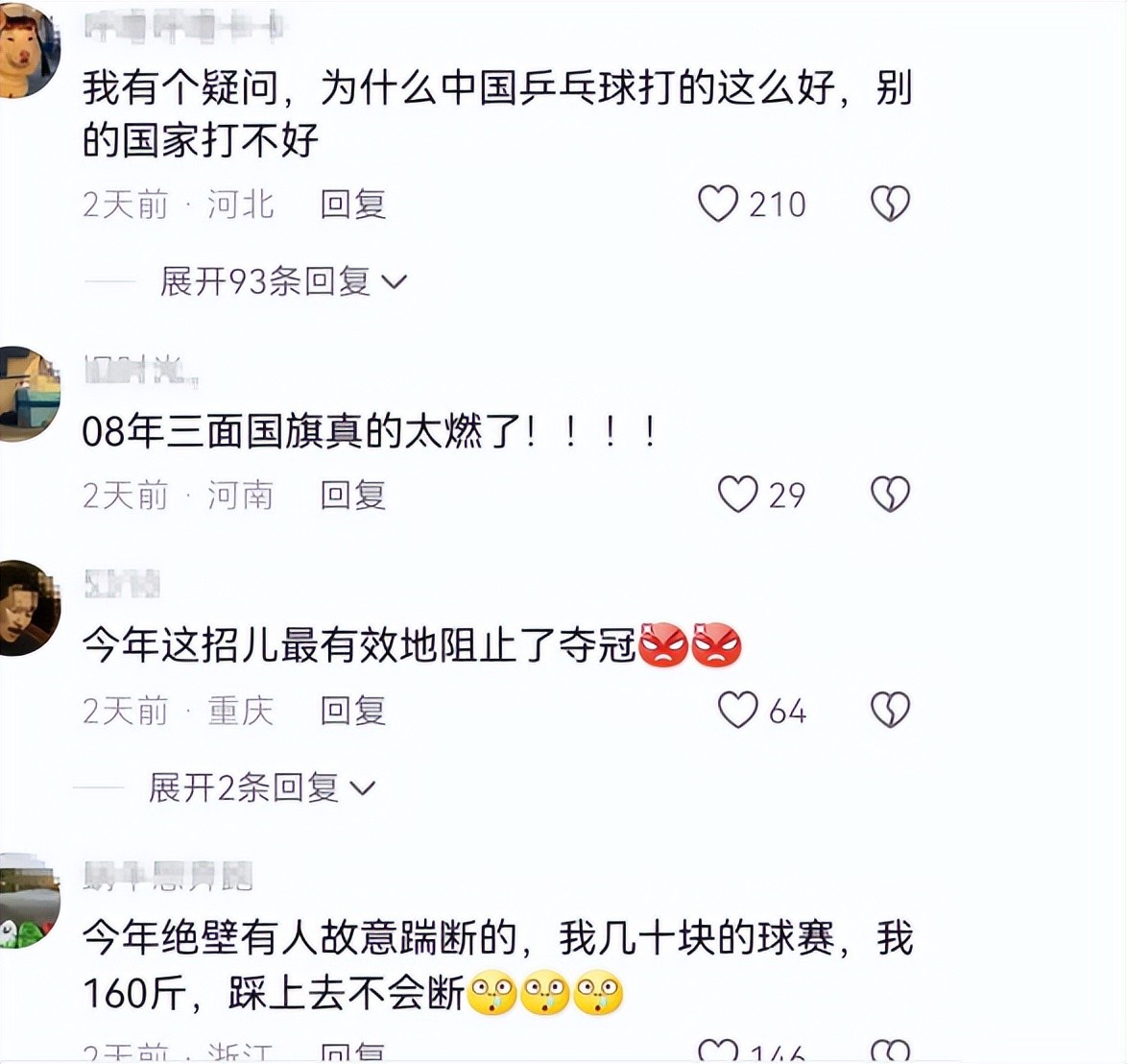 回忆起2008年三面国旗的场景,那一刻真的让人热血沸腾,近年来这些改规则确实是有效地阻止了中国的霸主地位,但我们还是强的!中国乒乓球一直都是世界顶尖水平,如果今年大头球拍不坏就更好了。