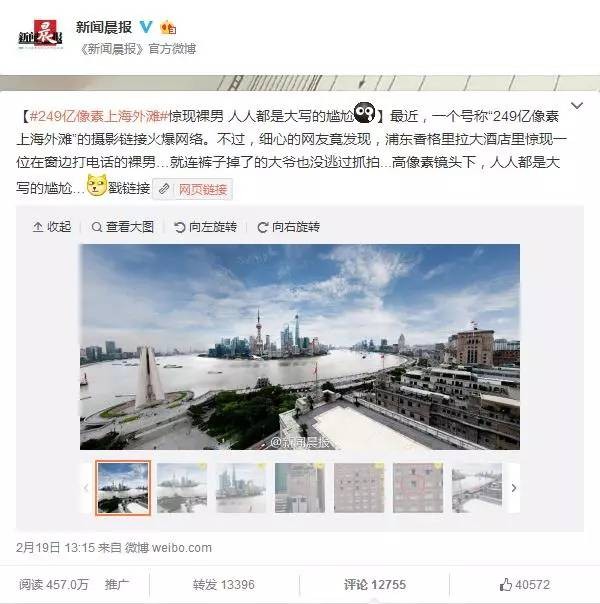 天呐,从249亿像素到1950像素!小伙伴们,想不想看看如此高清的魔都全景呢?