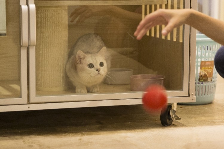 “上周末一天估计有300的人流量,但店里同时只能接纳10位客人,所以还需要在门外轮候”,浩仔说,即使人数多,但接待的程序不能乱,“进门前一定要说好规矩,不可以敲打笼子玻璃,不可以抱起猫狗,拍照也不能用闪光灯”。