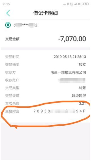 经纪人向记者提供的入金转账截图