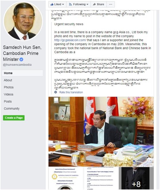 就在记者调查该平台期间,5月17日,柬埔寨国家总理洪森发布推文表示,“紧急国家安全新闻,最近GCG ASIA将我名字照片放到网上,称我是该公司的支持者......根据印尼驻柬埔寨大使馆的说法,GCG ASIA是一家假公司,并被列入黑名单。”