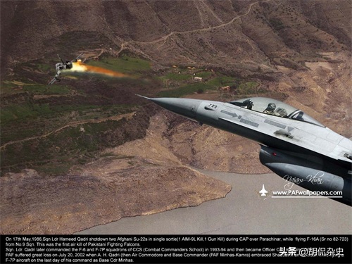 • 1987年3月30日,位于帕拉奇纳尔地区的雷达发现了两架低速飞行的目标,被识别为无线电电子侦察飞机。F-16巡逻机组,由第9中队的机长阿卜杜勒·拉扎和小队长西坎迪尔·海亚特组成,接到命令(指挥官为战斗指挥官佩尔瓦兹·阿里·汗)进行拦截。