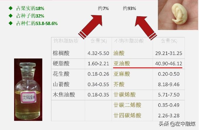 三是经济价值高,是食用药用的重要树种。文冠果是北方重要的木本油料树种,文冠果的果仁、果壳、叶片、花、茎干、根等部位包含多种活性物质,其叶片中蛋白质含量较高,加工后可做茶饮,可起到利尿、稳定毛细血管、止血的疗效。茎干中的甾醇、香豆素、黄酮、鞣质等活性物质食用后同样具有抗炎、改善记忆、抗病毒、抗癌的作用。果种皮可制成活性炭,油渣经加工后可做饲料,木材可加工成高档工艺品。种子含油率30%-36%,种仁含油率55%-66%,果油色泽淡黄,气味芳香,营养丰富,符合国家一级食用油标准,是高级药、食兼用油,油中不饱和脂肪酸含量高达94%(油酸占57.1%),凝固点低,不易氧化沉积,长期食用对人体极为有利。油中亚油酸占37%,可软化血管,降血脂血压和胆固醇。同时,文冠果油还是目前世界上唯一含有神经酸(3%-5%)的食用植物油,提取出的神经酸可以治疗老年痴呆以及促进婴幼儿大脑发育,被誉为大脑营养素和神经再生素。以当前市场价格估算,每亩地文冠果产籽可达300斤以上,按10元/斤计算,亩产值至少可达3000元以上。