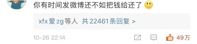 面对这么敷衍了事、语焉不详的回应,显然网友并不买账,在评论里催周震南还钱的评论已经被赞到49万。