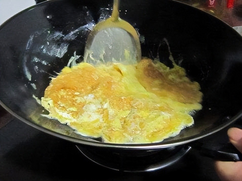然后把蛋液充分的搅拌均匀,把锅烧热,再放上一勺油,把蛋液下锅,开中火炒至两面金黄,就可以出锅了,钙含量丰富,中老年人常吃手脚有力。