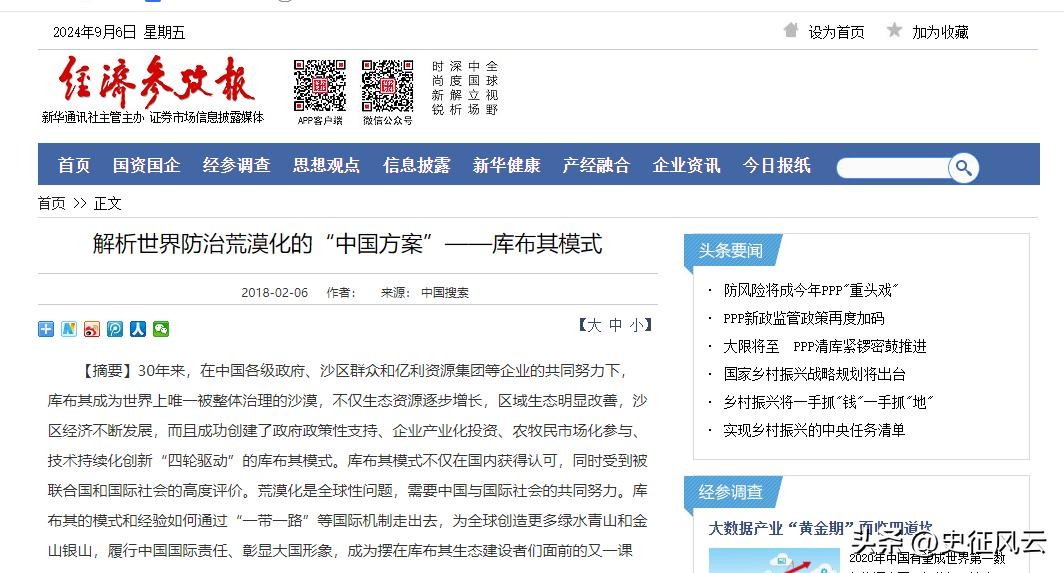 因为荒漠化不是一个国家的问题是整个世界的问题,库布齐沙漠在这一步走的非常成功,对其整个世界都非常有借鉴意义。