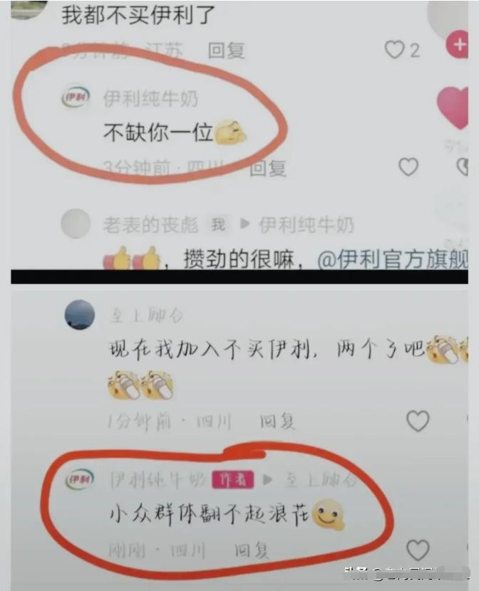 就在舆论攻伐之际,伊利方面却是熟视无睹,不仅未作出正面回应,反而在网上对骂声浪潮"熟视无睹",更是发表了一些令人瞠目结舌的言论。