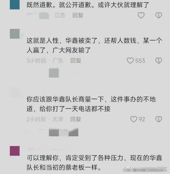华鑫不无讽刺地恭喜王师傅,并自嘲说他家小孩把那几箱"破损牛奶"给喝了。而另一位"卡维会"负责人更是直言不讳地痛斥王师傅的做法"简直令人发指",认为他已经背弃了所有支持他的网友。