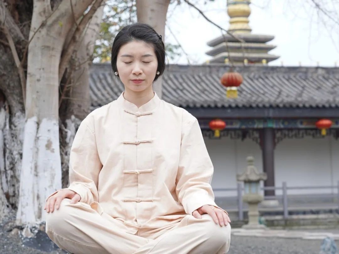 3.双腿交叉坐着。倒不必双盘,但背脊一定要维持挺直。