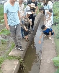 想好好跳个水,没想到冲得太快摔倒了。