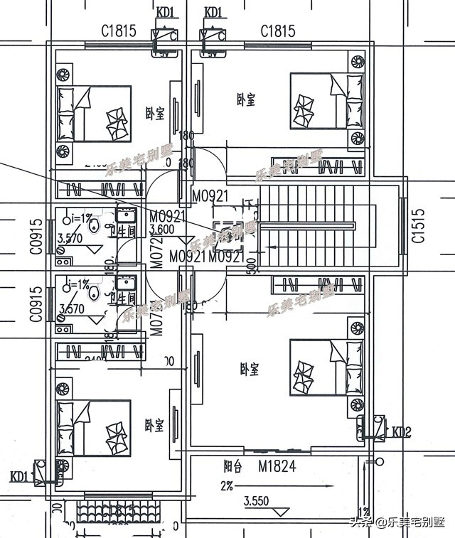 二层:大卧室(带阳台)、主卧(带内卫)、2次卧、公共卫生间