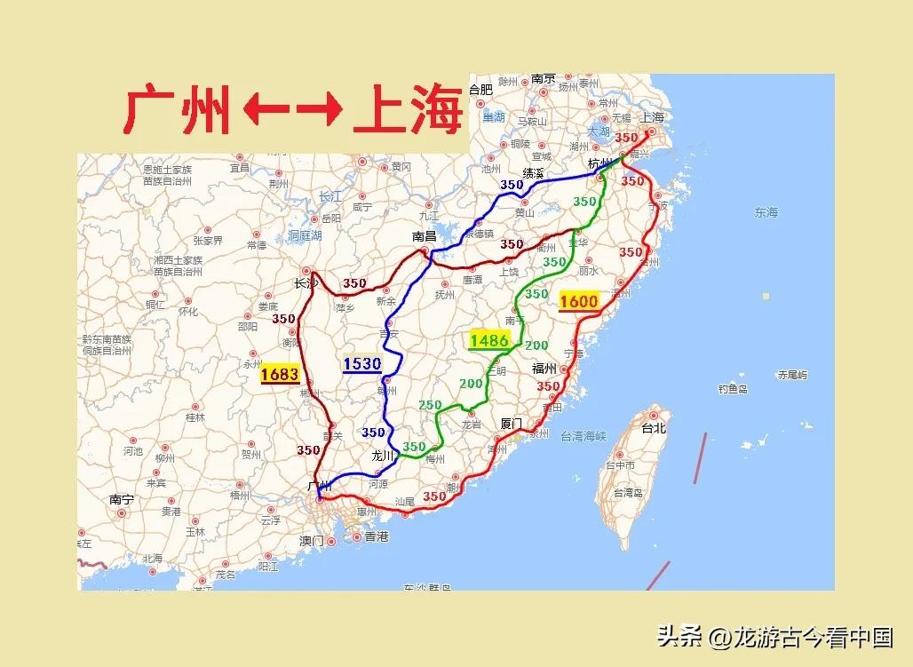 广州至上海的4条高铁通道,最快竟然不是走南昌,而是走沿海通道