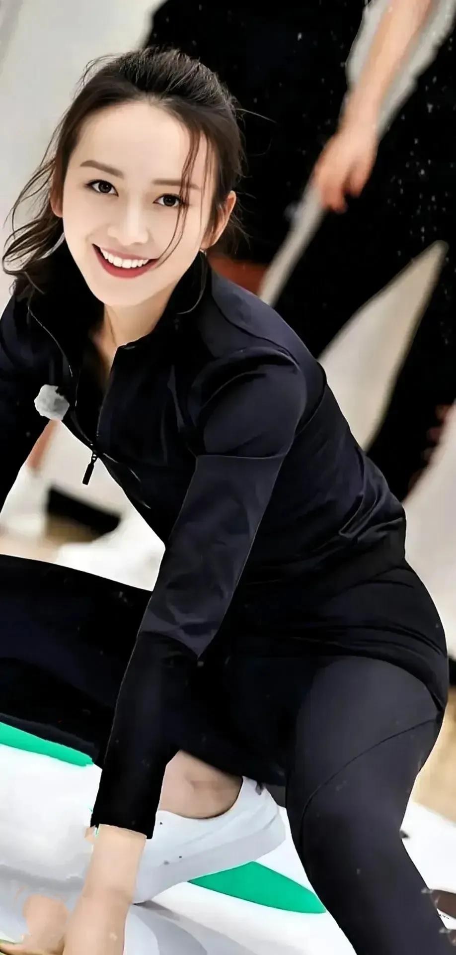 她身着一袭黑色运动装,色彩暗淡而不失高雅,宛如一朵盛开的玫瑰,绽放出无尽的魅力与生机。运动装的映衬下,她的肌肤更显白皙细腻,宛如凝脂。眼神深邃而富有故事感,仿佛能够洞察世间万物,又似乎藏着无数未解之谜,引人遐想。