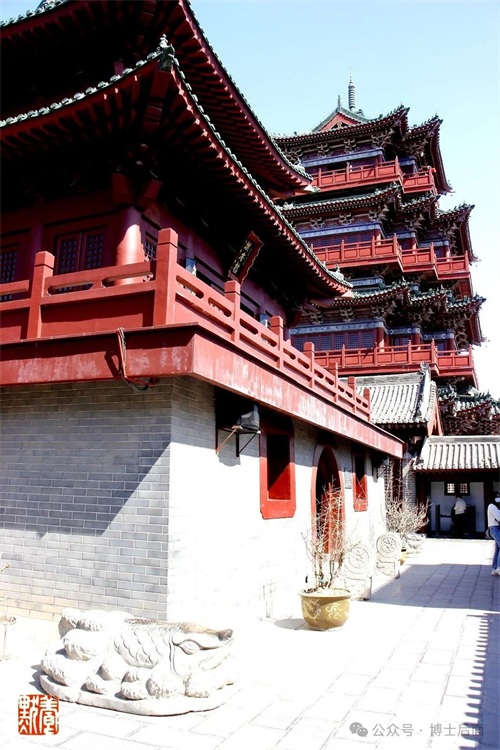 登临顶层极目远望,开封城尽收眼底。脚下的开封府与包公湖畔的包公祠相互呼应,垂柳碧波相映衬,春色浸染,东府西祠,春色盎然。