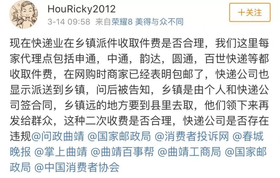 农村快递“二次收费”违法!这个地方出手了