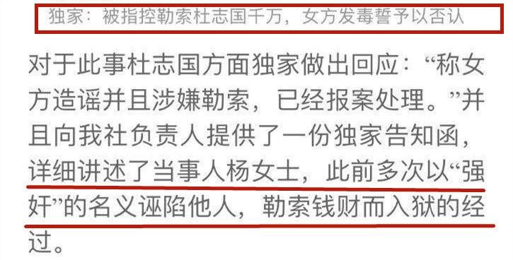 2017年7月,一位女生的控诉上了新闻热搜,众人震惊。这位杨女士称杜志国前段时间迷奸了自己,自己现在已经怀孕,但他却拒不负责,自己只能在网上发布信息求助。这条消息在网上炸翻了天,杜志国此时已经61岁了,竟然出轨这么小的女生,还是粉丝,这让大家接受不了。