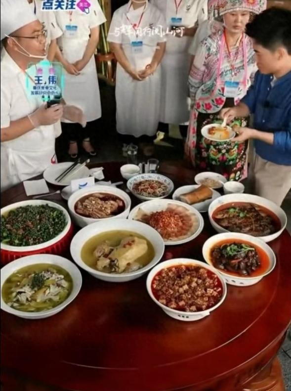 整个品鉴过程中,当地享有盛名的非遗传承人和美食大师们亲自操刀,不仅展现了他们扎实的传统手艺,更通过那一道道色香味俱全的菜品,传递出了重庆人民热情好客、崇尚美食的淳朴情怀。九大"国宝级"名菜,九位大师级的制作者。