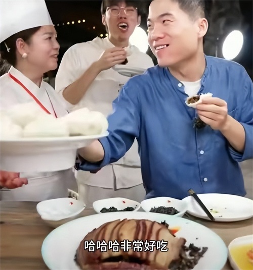 不论是巫溪腊肉、铁山坪花椒鸡,还是麻辣兔、酸菜鱼,每一道菜品都令人赞不绝口。面对如此"珍馐美味",董宇辉团队自然是连连称赞、吃得不亦乐乎。而在品尝过程中,身为团队成员的鹏鹏也展现了他独特的幽默和谦逊。