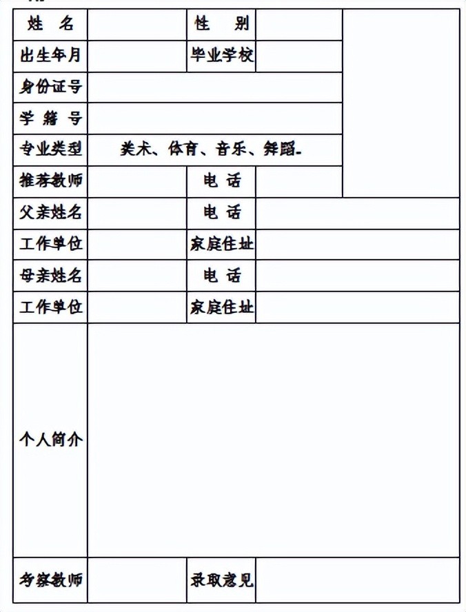 体育特长生、音乐、舞蹈等特长生将相关荣誉证书或等级证书发到指定邮箱进行初审报名。自行下载报名申请表发到指定邮箱(报名表见附件1)。