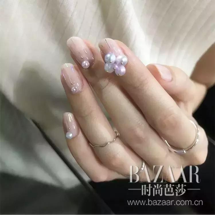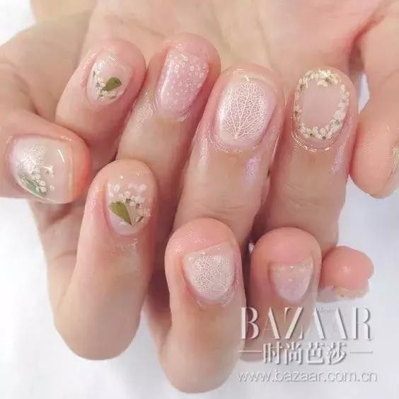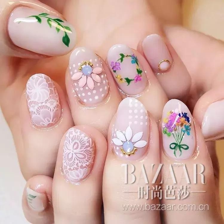 这款用各种材料拼接出来的粉色系花朵甲,你看出它的活力了吗?