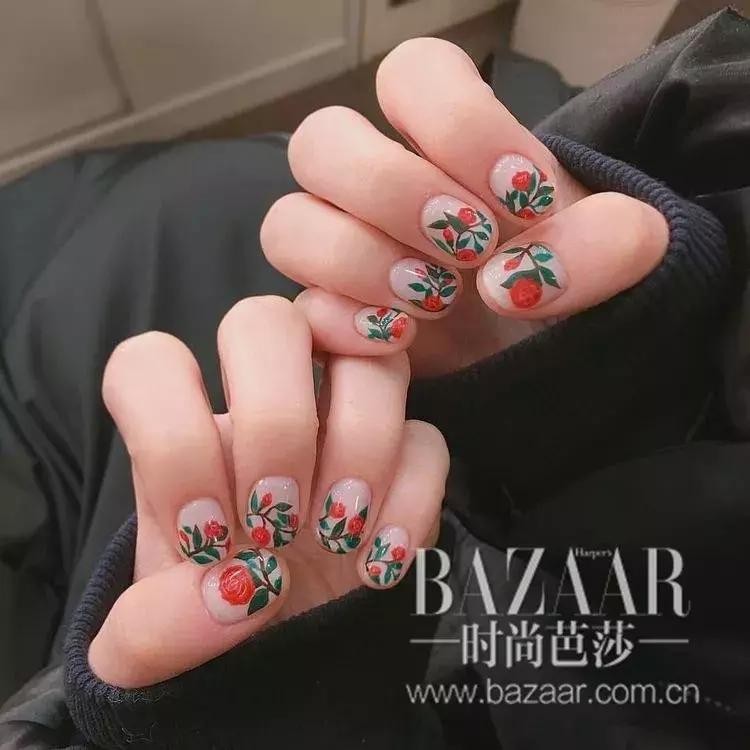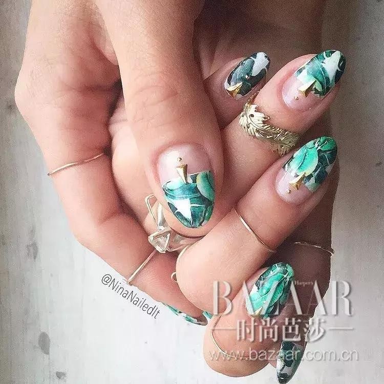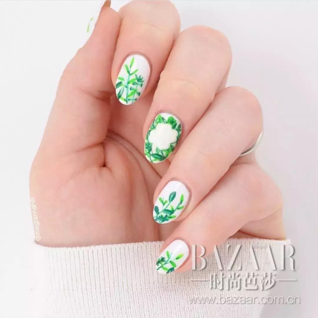 说道夏天怎么能少了绿色?有着花朵和绿色图案的美甲了解下吧~