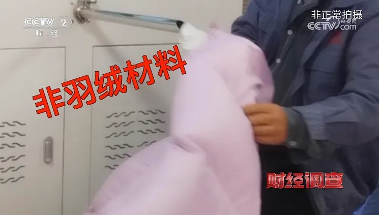 由于其形态与羽绒有相似之处,当“飞丝”和“羽绒”被填充进被壳后,无论是从外观审视,还是用手直接触摸感受,消费者都极难分辨出二者的差异。而商家为降低成本、追逐更高利润,便在生产过程中动起了歪脑筋,选择以“飞丝”冒充“羽绒”。