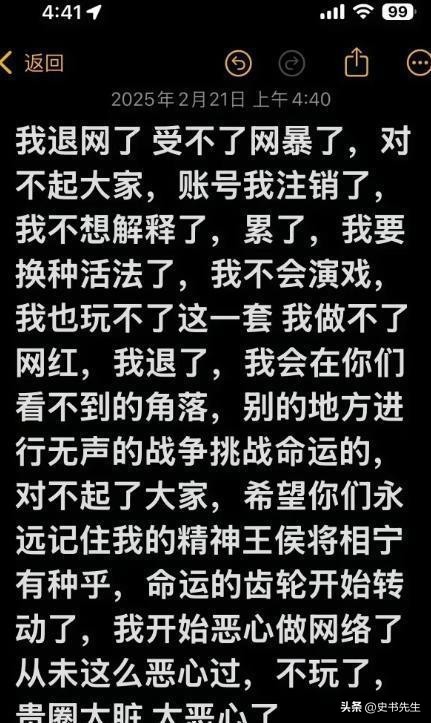 只能发出生命,声称自己开始恶心网络上,提出了退圈的想法。