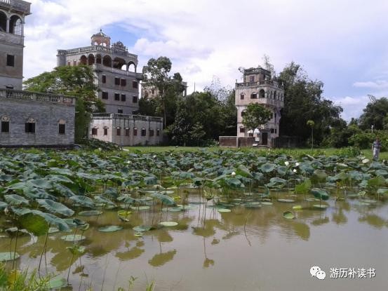 透过荷塘,远望白云下座座秀美的碉楼,加之今日游客稀疏,颇觉静好