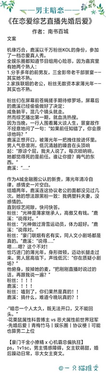 男主太可了,毒舌见表能力满级,怀着暗恋当新郎,迅速套路女主领证,坐实名分,然后那个结婚证每天都随身带着笑死了,男主真的是超级守男德,求生欲极强。就是甜甜的婚后恋爱,感情戏没什么阻碍,书荒看吧,我当时看它全靠同期其他完结文的衬托。