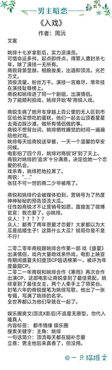 还不错,男主自我攻略哈哈哈。女主美强惨,身世悲催,有神一般的演技,但是因为长得太漂亮,还拒绝潜规则,一直没有资源,被人算计下药。开篇就是女主中了药,迷糊中进了男厕所强吻了男主,所以男主对她印象很不好。男主家族宠儿,有流量,有背景,一开始以为女主蓄意接近,所以态度恶劣,很欠打。后来发现女主即将跟自己合作一档综艺,更是不愿意,不给女主好脸色,但是后面在相处中真香打脸。每次都是既然你那么想勾搭我,那给你一点机会吧那种哈哈哈,还各种变身醋王,结果一来二去只有男主一人付出了真心笑死。这本真的还不错的!