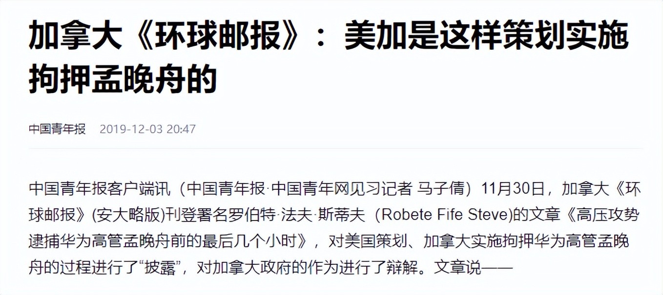 加拿大《环球邮报》:美加是这样策划实施拘押孟晚舟的