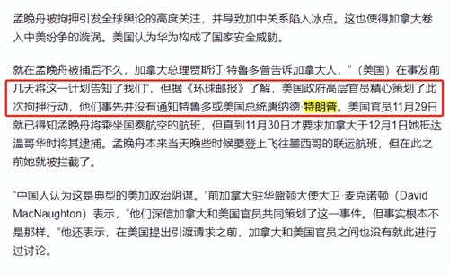 原来早在孟晚舟女士被抓前的几个小时,美国高层就已经收到了逮捕孟晚舟的消息,并且根据环球邮报的匿名采访得知。