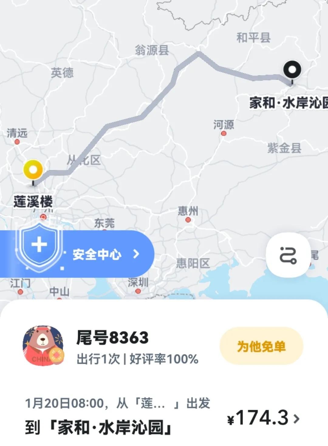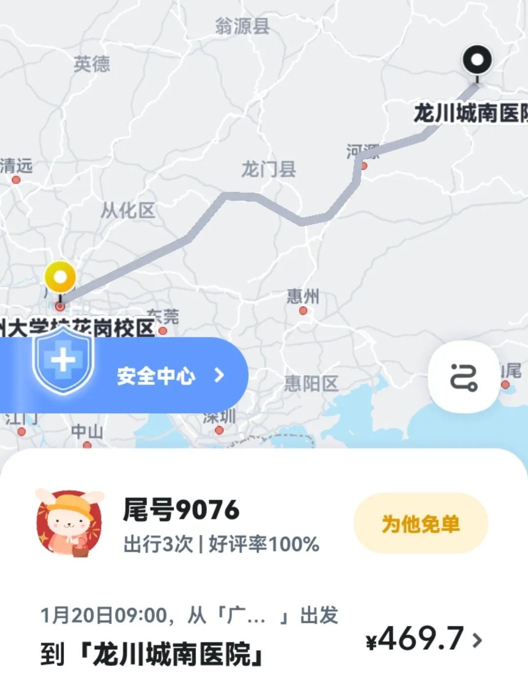 1月21日,我接了两单拼单到河源龙川的顺风单,一单是三个女学生,另一单也是一个姑娘,两单剩客的目的地几乎就在一起。下午1点,我就顺利(没有堵车,非常畅通)的安全的把她们送到了目的地。