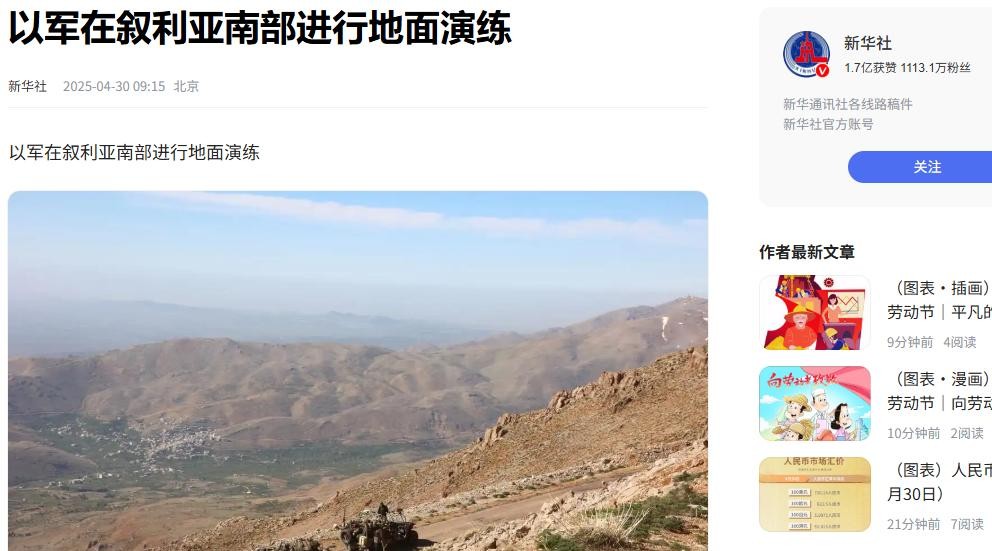 新华社 以军在叙利亚南部进行地面演练2025-04-30