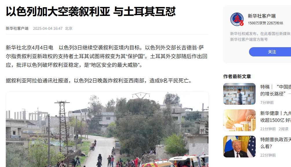 新华社 以色列加大空袭叙利亚 与土耳其互怼2025-04-04