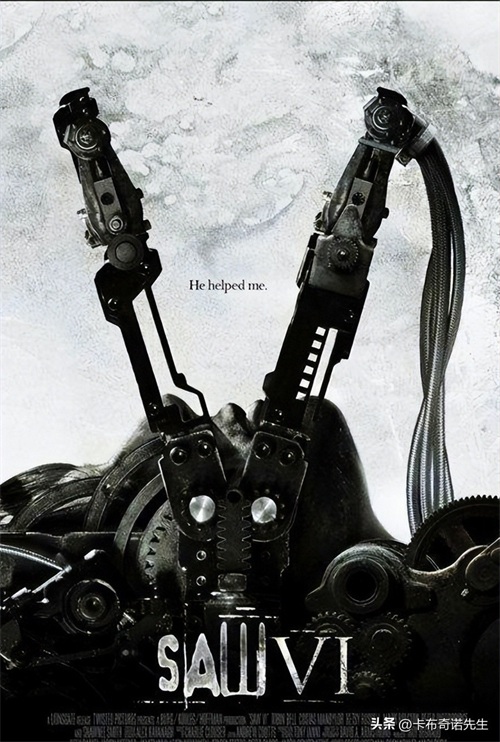 《电锯惊魂》第六部于2009年上映,由凯文·格鲁特执导,托宾·贝尔、科斯塔斯·曼迪勒、彼得·奥特布里奇主演的恐怖片。该片讲述了斯特拉姆探员死了,联邦调查局探员埃里克森离霍夫曼越来越近。与此同时,一对保险公司高管发现自己陷入了另一场由竖锯设定的游戏的故事。
