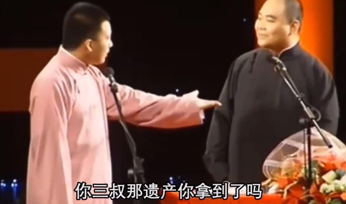 郭德纲说用的是相声说口:这么大艺术家,你说最后剩下两包挂面,几把凳子,这说不过去。-----几千万是有的吧。
