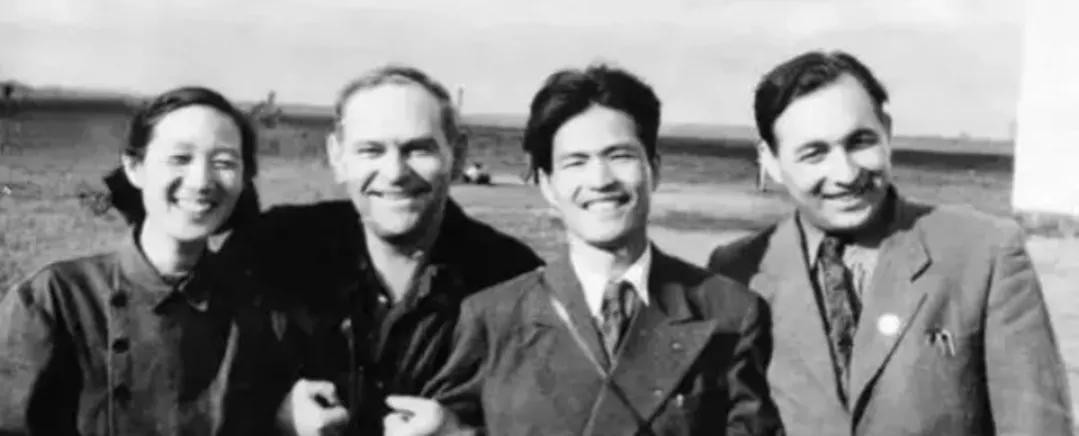 瞿独伊与李何(左三)在苏联