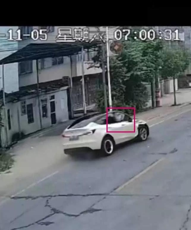 但从监控视频明显可见,这辆特斯拉在气囊弹出后车速未降仍继续狂奔。有网友卡着时间做了分析:在撞击电动车之后安全气囊弹出并且爆胎,此后又第二次,剐蹭自行车。第三次,撞击三轮车7:00:59第四次,第三次撞击后紧接着漂移,然后撞向高中生后停止。