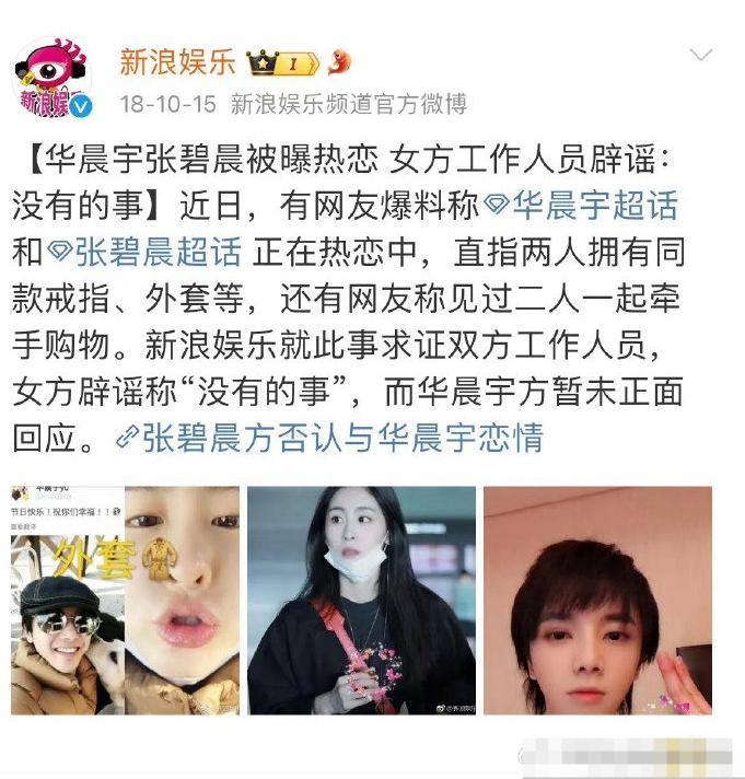 2018 年,张碧晨被爆和华晨宇恋爱,但张碧晨否认了这一说法。