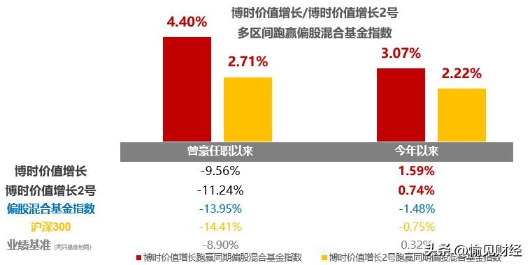 从曾豪现任管理的两只产品来看,“博时价值增长”(050001)与“博时价值增长2号”(050201)至今回撤控制在-13.44%、-14.81%。而偏股混合型基金指数回撤-16.11%;沪深300指数回撤-21.04%,同期业绩比较基准最大回撤-14.55%。