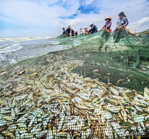 虽然累,但是大家心里都充满了期待,大家都迫不及待的来到渔网前,看看到底是捕到了什么好东西。