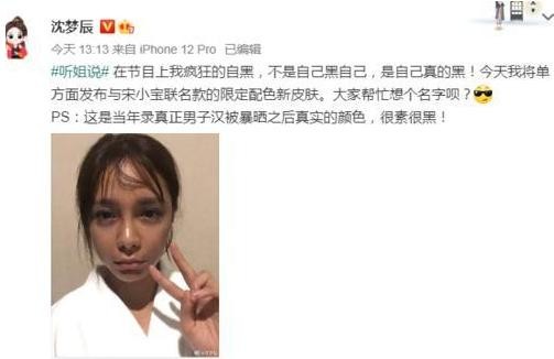 对此,她本人倒是看得开,还在社交网站上亲自认证了宋小宝同款肤色,指出在暴晒后,肤色是真的黑。