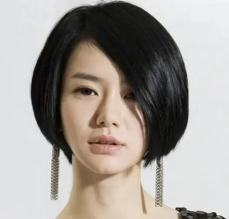 长黑直,戴个眼镜,五官整个看起来比较柔和。