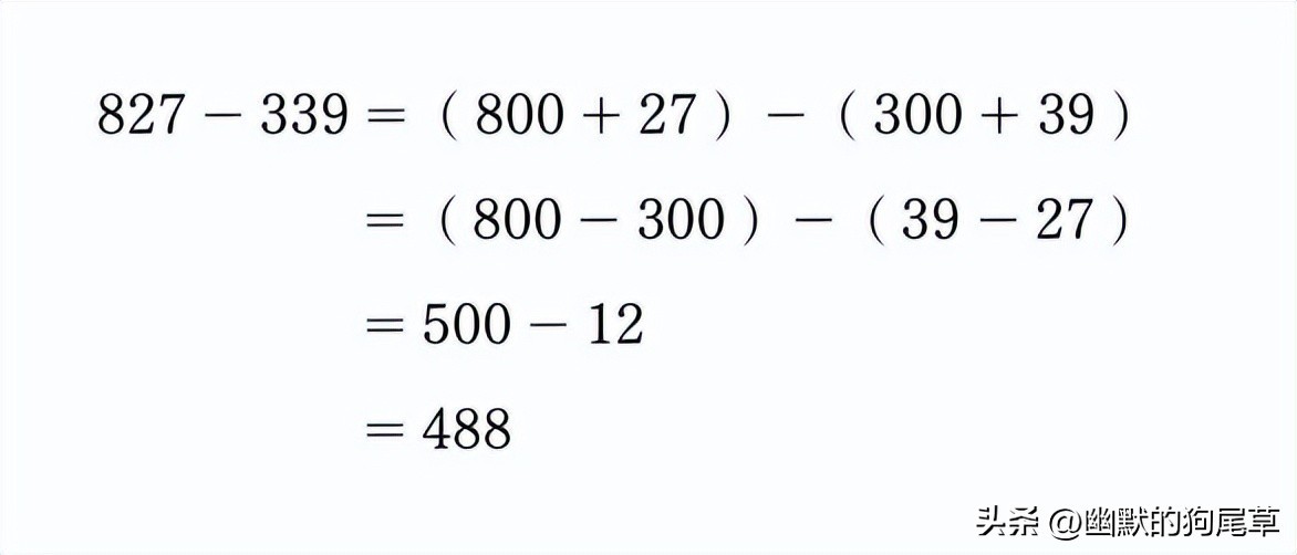 在比较A的827和B的339孰多孰少之前,我们如果先看百位就可以发现,A比B多了500。而看到后两位时,则可以发现B比A多了12。所以在最终对决时,将500和12相比,就可以看到,500比12多了488。