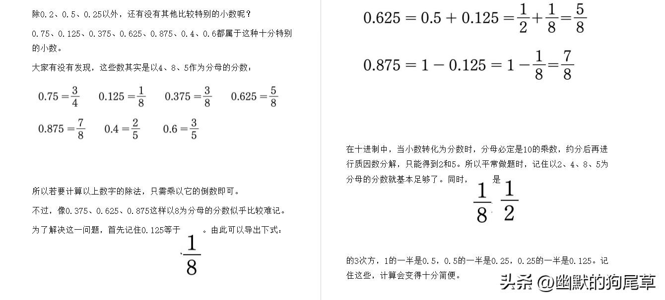 这种将除数转化为分数后再进行计算的方法,对于上述这些特殊的数字运算非常有效,但若遇到如下(1)~(3)的情况,这种方法。并非全部适用,我们应该尝试活用多种方法。例如: